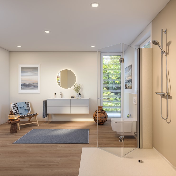 Die alte Wanne wird durch eine rutschhemmende Dusche ersetzt, moderne Materialien sorgen für Langlebigkeit und einfache Pflege.