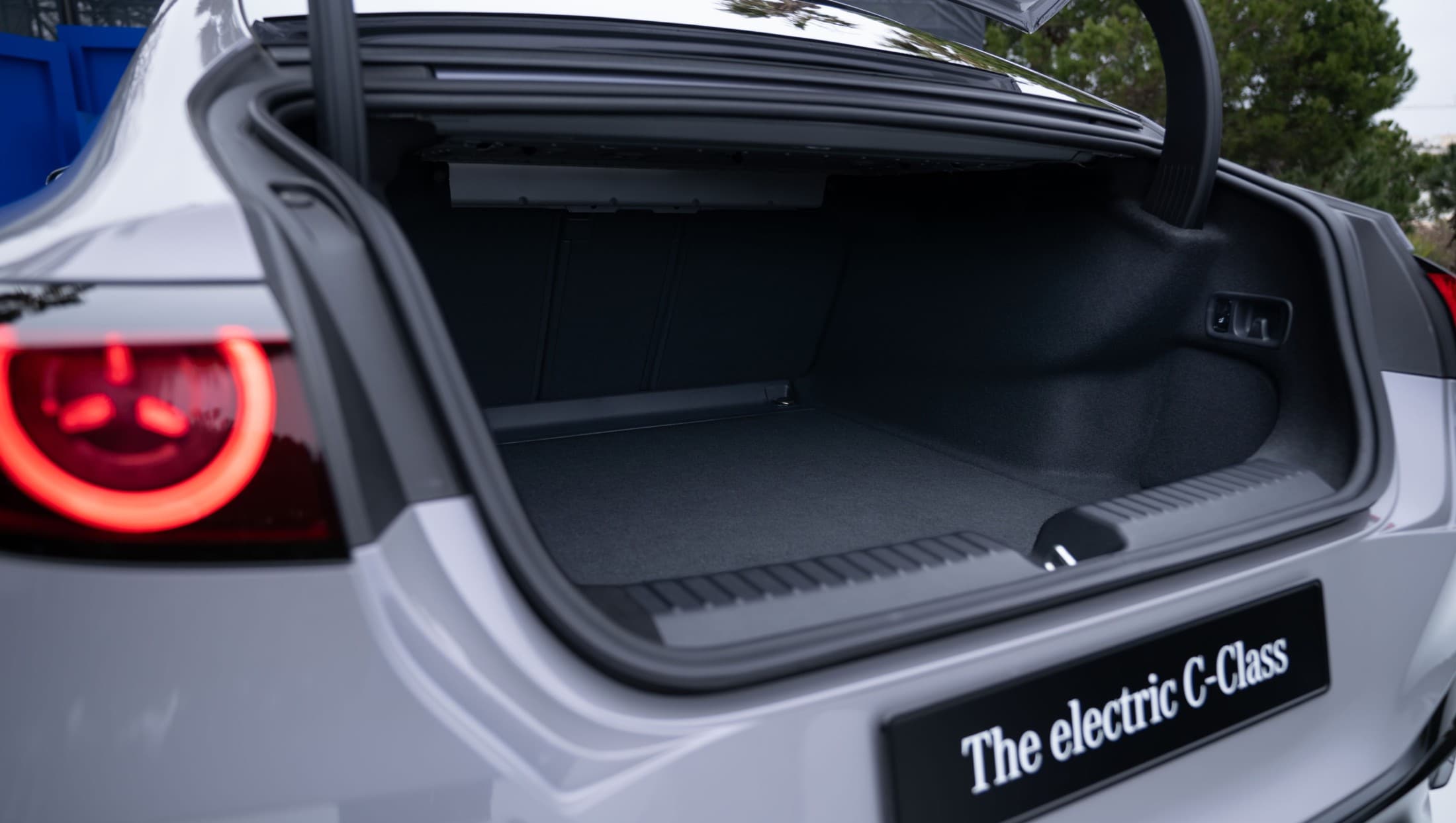 Auf der anderen Seite muss sich die C-Klasse hinter dem BMW einreihen, was die Reichweite angeht. Statt 108,7 kWh wie die beiden BMWs speichert der Stuttgarter Akku nur 94,5 kWh, dementsprechend fährt der Wagen mit dem mit Leuchtsternen übersäten Kühlergrill nach WLTP also nicht 900, sondern „nur“ bis zu 760 Kilometer weit. Das ist nicht wenig, aber nicht die Neudefinierung des Segments.