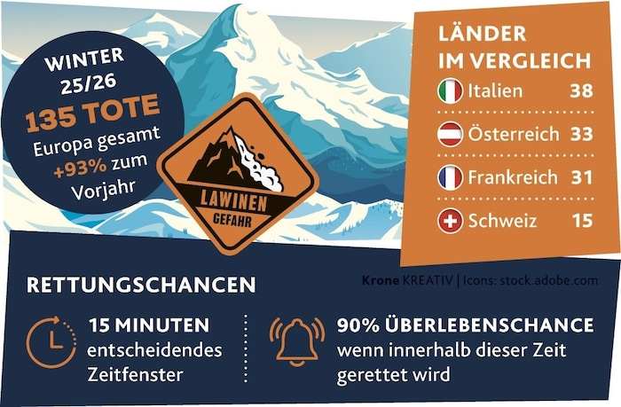 Das war auch am Mittwoch ursächlich für den Lawinenunfall im Tiroler Kühtai (Bezirk Imst), bei dem ein deutscher Variantenfahrer (49) ums Leben kam. Er war der 18. Lawinentote in Tirol 2025/2026 – 20 wären Negativrekord.