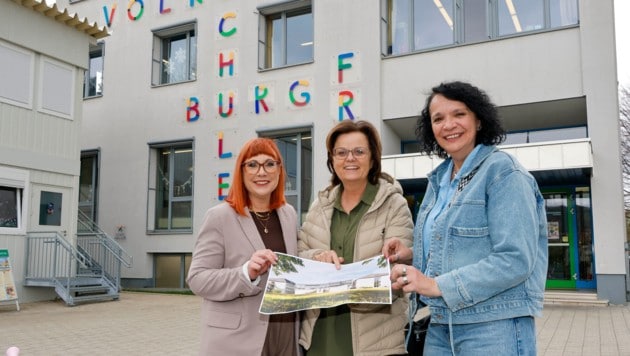 Knapp fünf Millionen Euro wird der Bau kosten. Mit dem Start der Sommerferien werden die Bagger auffahren. Auf die bestehenden Turnsäle kommt ein zweistöckiger Aufbau – sechs mögliche neue Klassenzimmer, ein Speisesaal, Büros und Aufenthaltsräume entstehen. „Wir haben bislang kaum Personalräume. Mehrere Jahre lang hatten wir nicht einmal ein Konferenzzimmer – das war unser Werkraum“, kann auch Elisabeth Olsacher, Direktorin der Volksschule, den Ausbau kaum erwarten.