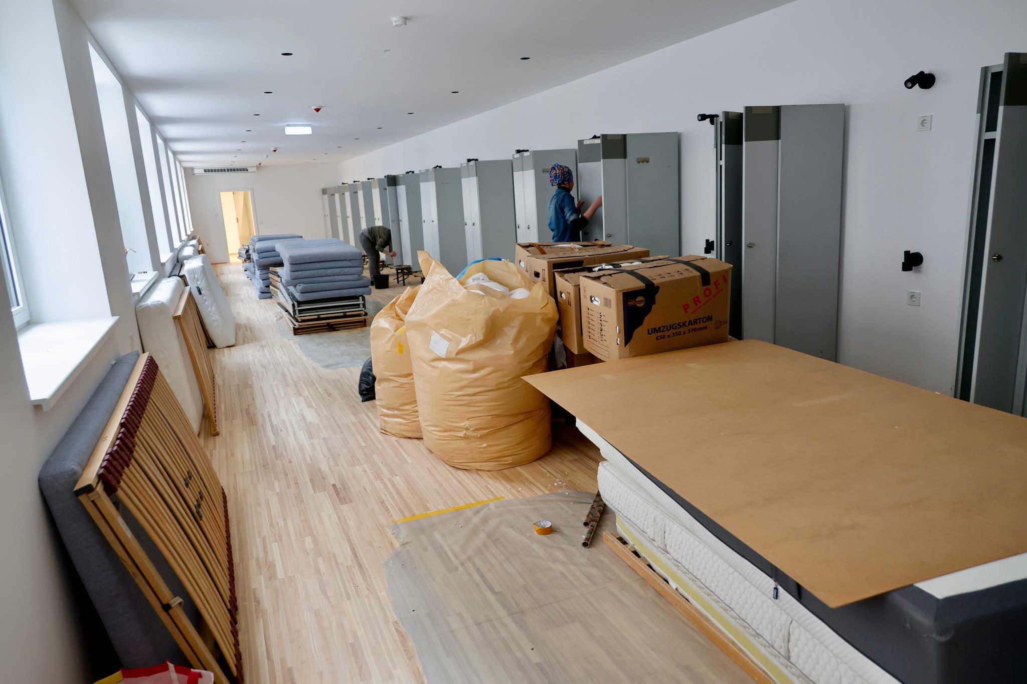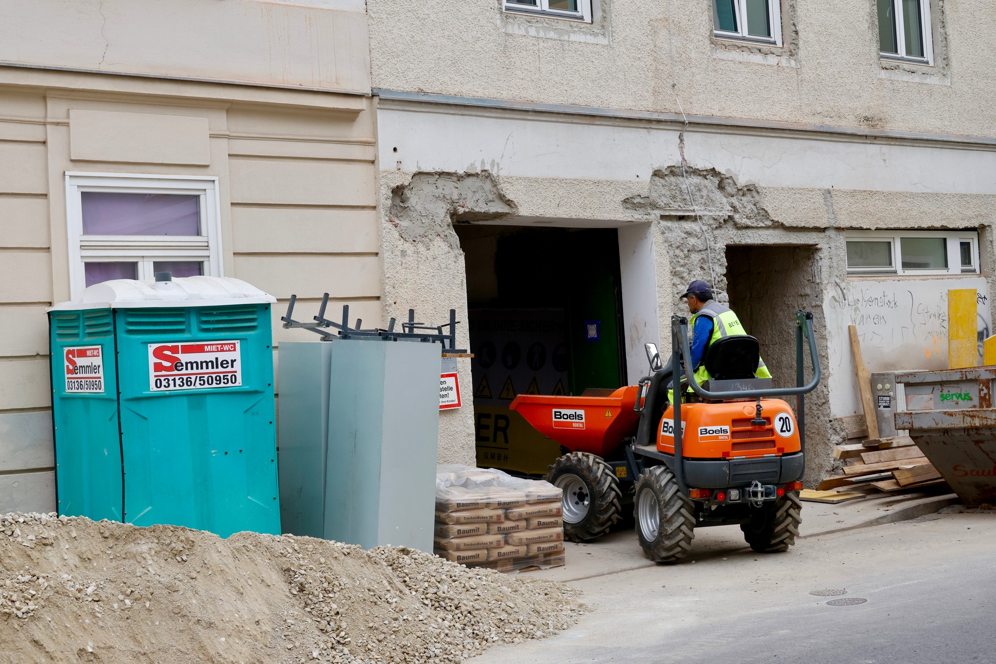 In der Maria-Stromberger-Gasse herrscht Hochbetrieb. Bagger werkeln im Hof, Arbeiter tragen Betten in das Haus, und im oberen Stock werden Spinde geschrubbt. Was aktuell noch mehr nach Baustelle ausschaut, soll ab nächster Woche zum neuen, alten Quartier von obdachlosen Grazern und Grazerinnen werden. Bis dahin soll die Kernsanierung der größten steirischen Notschlafstelle abgeschlossen sein.