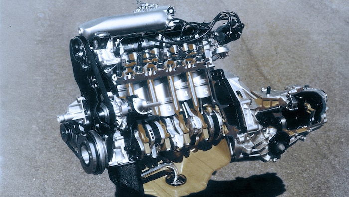 Sich mit Mercedes messen und zugleich den Sechszylindern von Ford und Opel Paroli bieten sollte auch der Audi 100 C2 als neues Flaggschiff aus Ingolstadt mit anfangs 136 PS starkem Fünfzylinder. Die Kassen der Marke mit den vier Ringen waren leer und so wurde das neue Top-Triebwerk als Musterbeispiel für eine effiziente Gleichteilestrategie entwickelt: Der 2,1-Liter-Benziner nutzte den um eine fünfte Zylindereinheit erweiterten 1,6-Liter-Vierzylinder aus VW Golf und Audi 80.