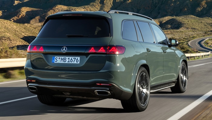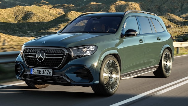Zur Verstärkung der physischen Präsenz des GLS wurde der chromumrahmte Kühlergrill mit Konturbeleuchtung vergrößert, dazu kommen kräftigere Streben und das Mercedes-Pattern in Chrom. Auch die neuen Stoßfänger vorne wie hinten sollen für einen noch markanteren Auftritt sorgen. Serienmäßig ist die jüngste Ausprägung des Digital-Light-Systems verbaut. Mikro-LED-Technik und ein leistungsstarker Chip sorgen für ein um 40 Prozent vergrößertes Beleuchtungsfeld bei einem um 50 Prozent verringerten Stromverbrauch. Optional gibt es, auch noch nach dem Kauf, die Möglichkeit, etwa Führungslinien, Symbole und Animationen auf die Fahrbahn projizieren zu lassen.