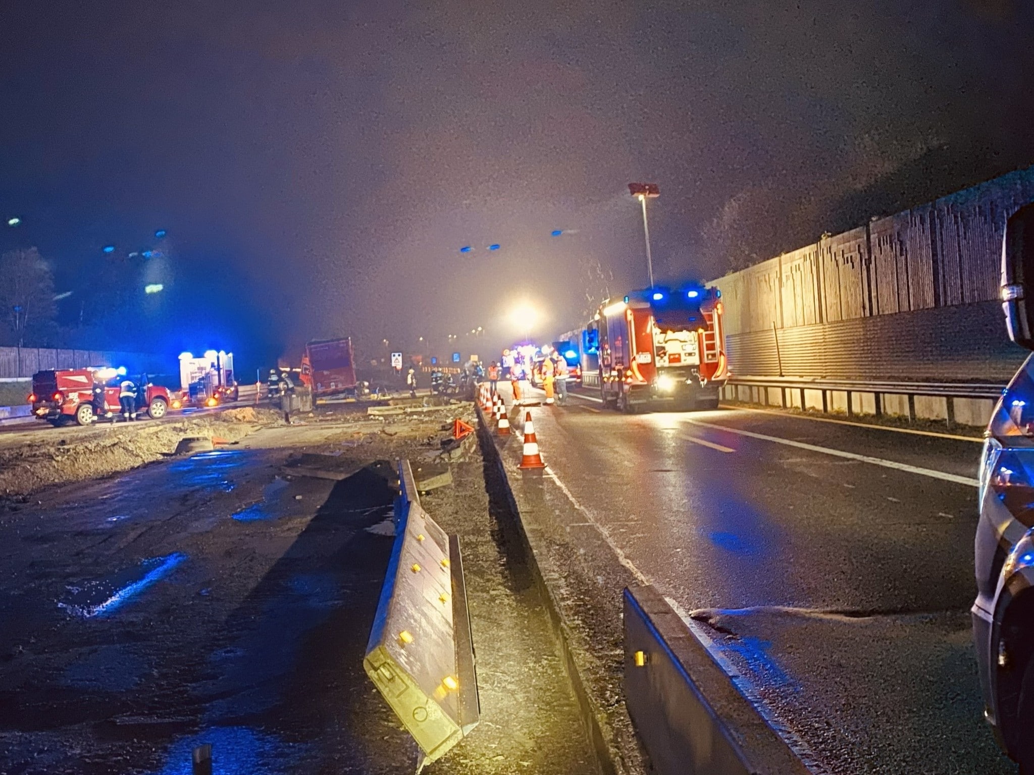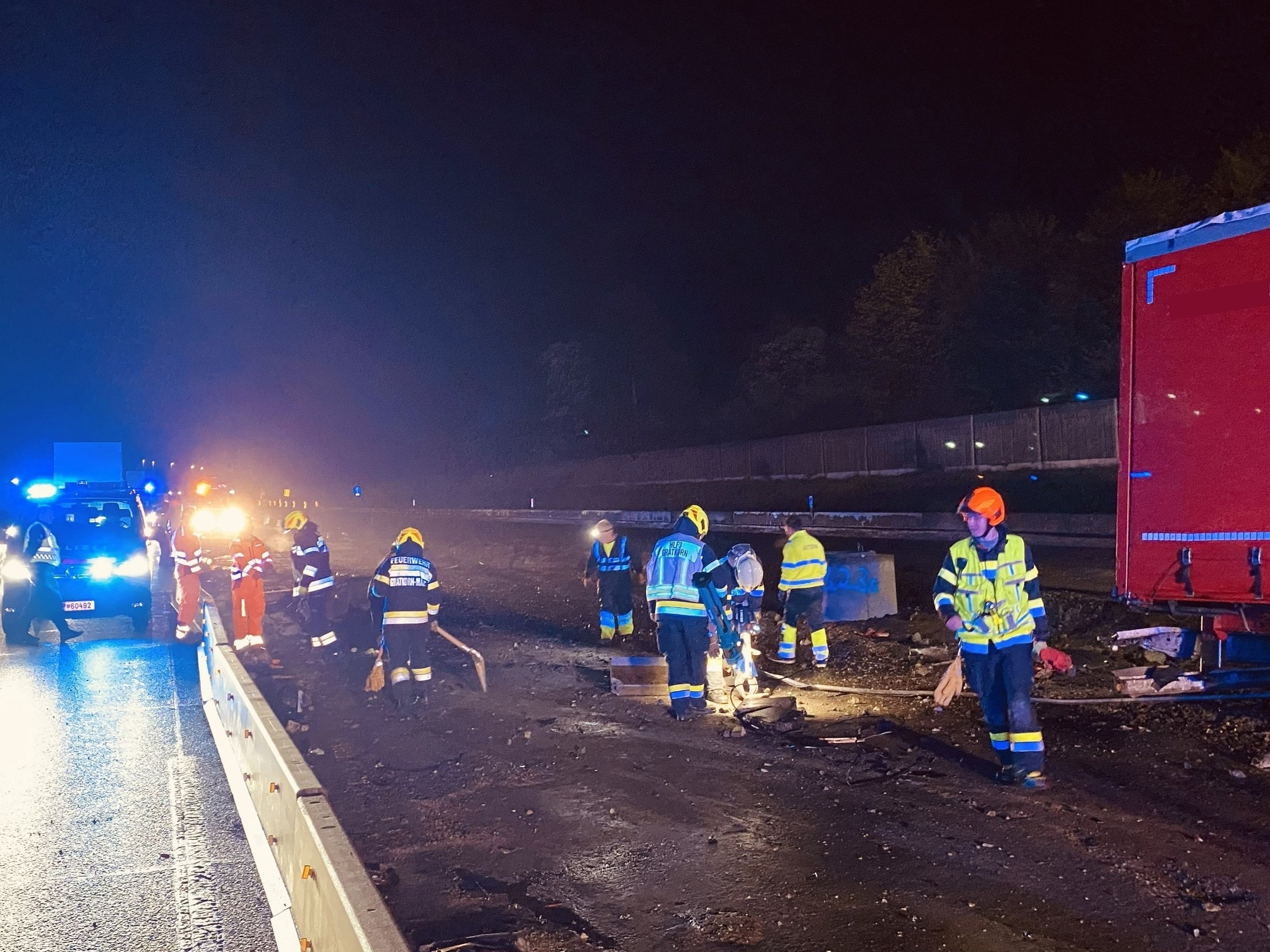 In der Nacht auf Mittwoch krachte ein Lkw-Lenker auf der A9 bei Gratkorn in der Steiermark gegen die Betonleitschiene. Während er unverletzt blieb, wurden das Fahrzeug und die Mauer massiv beschädigt. Wegen des Ölaustritts musste sogar die Landeswarnzentrale alarmiert werden.