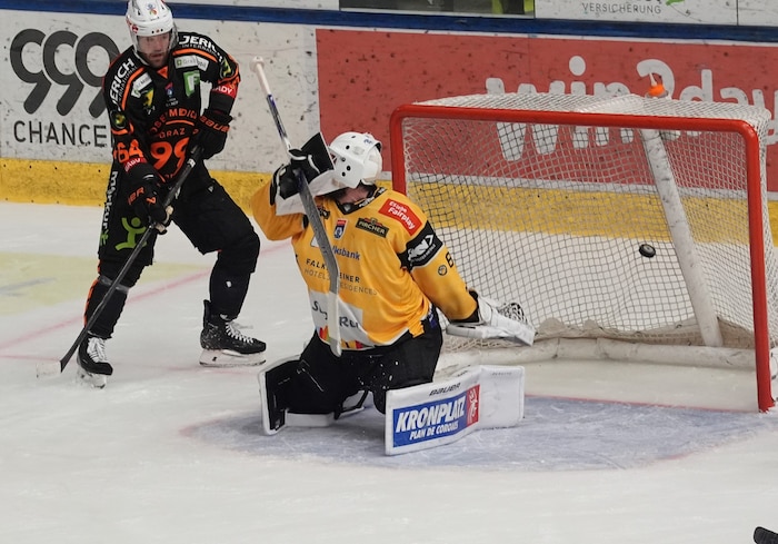 Graz coach Daniel Lacroix once again started Nicolas Wieser in goal at the Liebenau Ice Arena in front of 4,621 spectators, as starting goalie Max Lagace remains injured. Wieser did a very good job, only having to concede on a shot by Austin Rueschhoff, who was left criminally unmarked (25th minute). But after the early goals in the third period that ultimately sealed the final score, the Pustertal team had run out of steam, and the game had lost some of its intensity; Graz’s clear victory was no longer in danger.