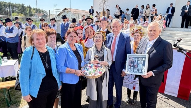 Im Anschluss ließen sich die „First Lady“ und er von Meisterinnen die Handwerkskunst des Ostereierkratzens erklären. Und unterhielten sich, zugänglich und unprätentiös wie sie sind, mit Bürgern, Gemeindepolitikern und Vereinsvertretern angeregt über gemeinsame Werte und Identität sowie das beachtliche ehrenamtliche Engagement und den starken Gemeinschaftssinn und Zusammenhalt im Dorf, den es in vielen Gemeinden so nicht mehr gibt. „Diese Lebendigkeit ist beeindruckend. Alleine die unzähligen Vereine mit den vielen ehrenamtlichen Mitgliedern zeigen, die sehr der Ort pulsiert“, lobte Van der Bellen.