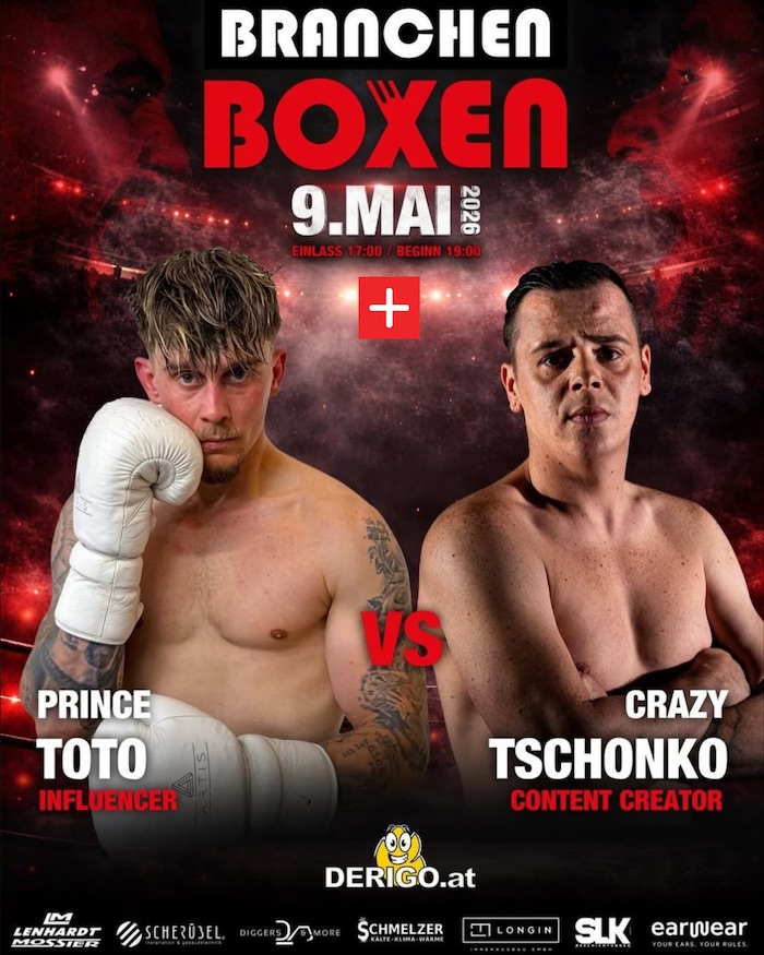 - MAIN-EVENT! Der ist heuer für zwei Influencer bzw. Content Creator reserviert. Zwar machte der Gegner von Christopher „Crazy Tschonko“ Katritschenko einen (verletzungsbedingten) Rückzieher, dafür sprang kurzfristig der Villacher Thomas Kaplaner alias „Prince Toto“ ein. „Wenn ihr wollt, dann kämpfe ich, mir reichen 21 Tage, um ‘Tschonko‘ auf die Bretter zu schicken“, posaunt der 30-Jährige großspurig. Abwarten, der Gegner hat definitiv einen Trainingsvorteil. Seit mehreren Monaten wird der Steirer im Styrian FIghtclub in Bruck von Karl Proderutti geformt.
