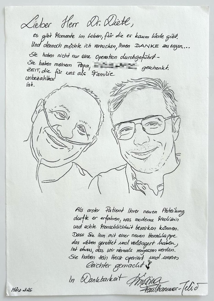 Schon bald konnte die Familie erleichtert aufatmen, die Operation verlief erfolgreich. In einem persönlichen Dankesbrief an Primar Dr. Wolfgang Dietl schrieb die Tochter Worte der Rührung: „Mein Vater durfte erfahren, was moderne Medizin und echte Menschlichkeit bewirken können. Dass Sie ihm mit einer neuen Herzklappe das Leben gerettet und verlängert haben, ist etwas, das wir Ihnen nie vergessen werden. Sie haben sein Herz operiert – und unseres leichter gemacht.“