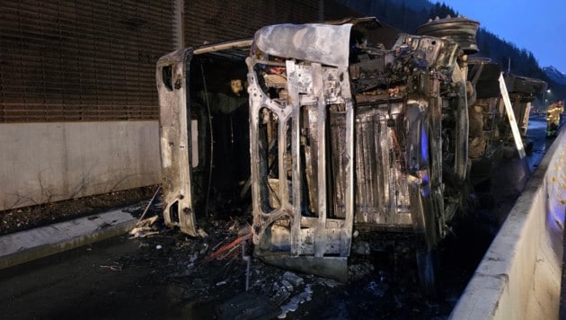 Kurz nach 4 Uhr in der Früh touchierte das Sattelzuggespann auf der Tauernautobahn auf Höhe Flachau aus unbekannter Ursache die Betonleitwände im einspurigen Baustellenbereich. Das Fahrzeug, das mit Styropor beladen war, kippte um und fing sofort Feuer.