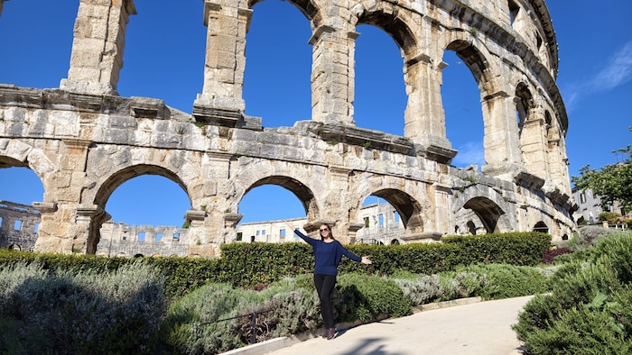 Tanja startet ihren Tag entspannt mit einem Kaffee am Balkon und Blick aufs Meer. Doch lange bleibt es nicht ruhig, denn nur wenige Minuten entfernt wartet eines der beeindruckendsten Bauwerke Kroatiens: die Arena von Pula.