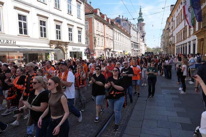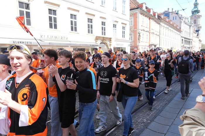Orange ist am Sonntag in Graz die Modefarbe! Die Graz99ers, Österreichs neuer Eishockey-Meister, zelebrieren den ersten Meistertitel der Klubgeschichte im großen Stil. Die „Krone“ warf sich ins Getümmel. Schmökern Sie durch die besten Clips und Bilder der Meisterfeier.