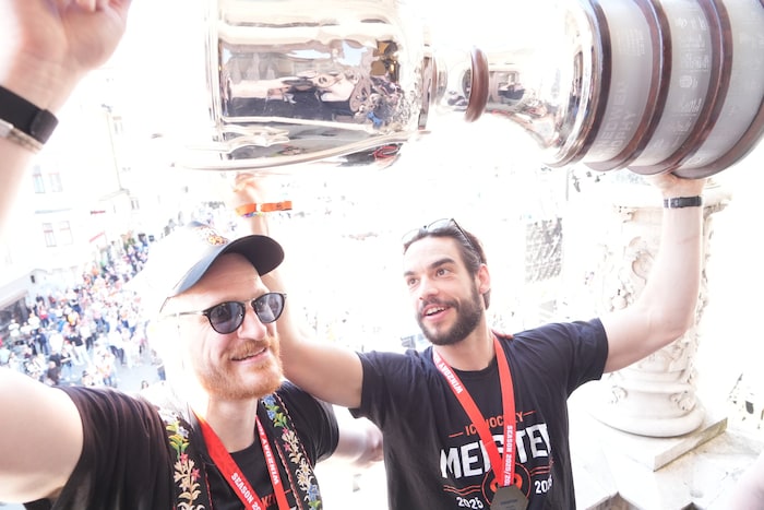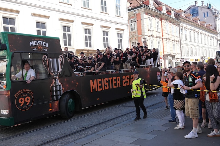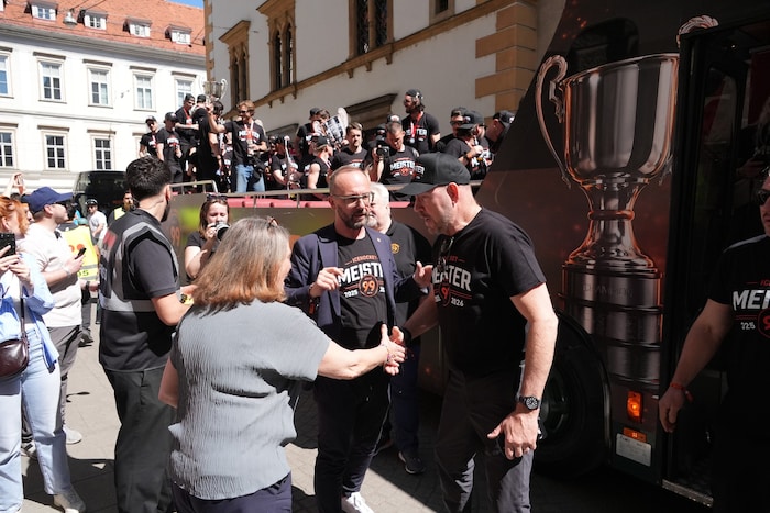 „Es ist einfach ein Wahnsinn, das mit allen hier in Graz erleben zu können. Viele Fans haben die 99ers angefeuert, als man durch dunkle Zeiten gegangen ist. Jetzt sind wir an der Reihe, mit ihnen und der ganzen Stadt diesen Titel zu teilen und zu feiern“, meinte ein sichtlich emotionaler Meistertrainer Dan Lacroix zur Krone.