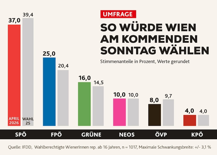 Wäre am kommenden Sonntag Gemeinderatswahl – so würde sich Wien entscheiden. Die Fakten: