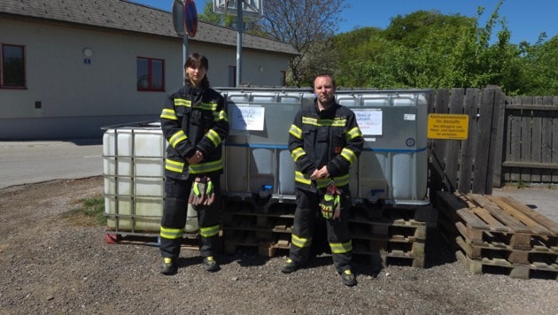 „Wir haben beim Depot sofort einen Behälter mit 2000 Liter zur Verfügung gestellt. Jeder kann sich dort etwas abfüllen. Allerdings kein Trink-, sondern Brauchwasser“, schildern Kommandant Pierre Karl Reichel und Feuerwehrfrau Esmeralda Sperl.