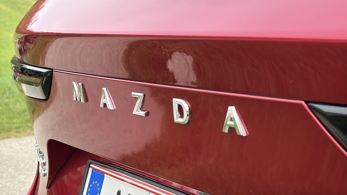 Beim Preis zeigt sich der Mazda dann wieder von seiner guten Seite: Zum Einstiegspreis von 36.880 Euro bekommt man nicht nur ein schnittiges, komfortables, ziemlich großes Auto, sondern auch richtig viel Ausstattung. 17-Zoll-Alufelgen, Zwei-Zonen-Klima, Adaptivtempomat mit Spurführung, Notbremsassistent und Querverkehrswarnung (+ Notbremse) vorn und hinten, Ausstiegswarnung etc., Rückfahrkamera oder auch Parksensoren vorn und hinten. Der Testwagen kommt praktisch vollausgestattet auf 50.450 Euro, inklusive dem typischen Mazda-Rot namens Soul Red Crystal, das allein schon 1000 Euro kostet.