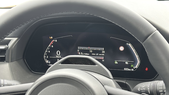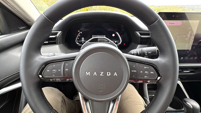 Auch beim Cockpit geht Mazda neue Wege – und verlässt alte Stärken. Die klassischen Rundinstrumente sind Geschichte. Stattdessen gibt’s eine digitale Anzeige, die nicht einmal versucht, wie früher auszusehen. Dazu kommt ein Bedienkonzept, das manchmal mehr Aufmerksamkeit verlangt, als einem lieb ist.