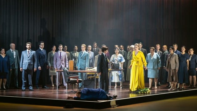 Publio verteilt während der Ouvertüre Sprengsätze im palisandergetäfelten Amtssitz des Kaisers und offeriert ihm am Ende einen Drink mit dem Gift, das für Sesto bestimmt war. Doch wie es in der Oper so ist, die Geschichte dreht sich vor allem um Liebe. Und hier folgt Michieletto der Intention Mozarts, eine sensible Zeichnung der Charaktere in den Fokus zu nehmen. Da ist das Paar Vitellia (Margaux Poguet) und Sesto (Lea Desandre). Sie skrupellos machtgierig, der junge Mann ihr hörig und sogar für sie zum Mord an seinem Freund Titus (Pene Pati) entschlossen. Oder der ebenfalls junge Annio (Siena Licht Miller) und Servilia (Yewon Han), beides Lichtgestalten, die in diesem Intrigenkabinett ihre Aufrichtigkeit bewahren.