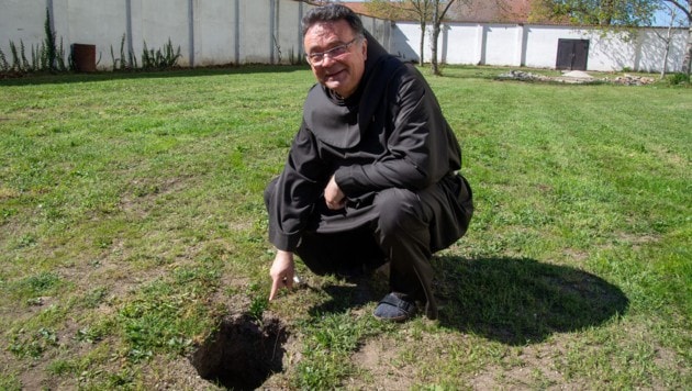 Pater Thomas hatte sich eine Kamera mit langem Kabel bestellt, um herauszufinden, ob es einer der Gänge sein könnte, nach denen er schon eine Weile fahndet. „Wir haben bereits in den Wänden geschaut, ob wir etwas finden, was nicht der Fall war. Und auch in der Krypta im Boden haben wir nichts gefunden.“ Nach Kamerafahrt und Grabungsarbeiten ist es jetzt aber doch fix: Auch das vielversprechende, tiefe Loch im Hof ist kein Geheimgang. „Es handelt sich um einen trockengelegten, alten Brunnen“, verrät der Stadtpfarrer von Frauenkirchen.