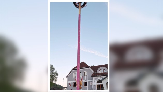 Ob die Folgen dieses Streichs so beabsichtigt waren? Unbekannte haben den Maibaum vor dem Feuerwehrhaus in Aggsbach-Markt rosa gestrichen. Doch genau das macht ihn nun zum beliebten Fotomotiv. Die Florianis freuen sich.