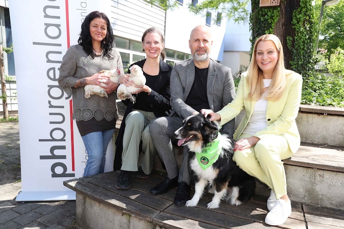 Beim Symposion „Dog Day“ in der HAK Frauenkirchen ging es um den Einsatz von Tieren im Schulbereich. Dabei wurde aufgezeigt, wie der gezielte Einsatz von Hunden Fürsorge- und Bindungsverhalten anregt und so die Förderung emotionaler Stabilität und sozialer Kompetenzen wesentlich unterstützt. Ergänzend ermöglichen Projekte mit Hühnern unmittelbare Naturerfahrungen und stärken Empathie und Verantwortungsbewusstsein. Landes-Vize Anja Haider-Wallner und Landesrätin Daniela Winkler machten sich mit dem gezielten Einsatz der Hühner und Hunde vertraut.