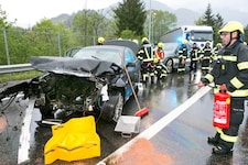 Die alarmierte Feuerwehr Koblach übernahm die Absicherung der Unfallstelle und reinigte die Fahrbahn von den Trümmerteilen.