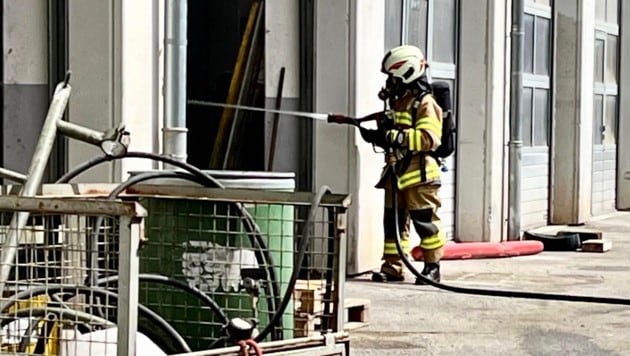47 Feuerwehrleute entschärften Mittwochmittag in Nußdorf (Salzburg) eine brennende Gasflasche. Diese drohte zu explodieren. Die Gefahr dabei: In der Werkstatt befand sich ein Ölfass, Waschbenzin, eine weitere Gasflasche und ein Reifenlager. Die Situation war äußerst brenzlig, wie der Einsatzleiter der „Krone“ schildert ...
