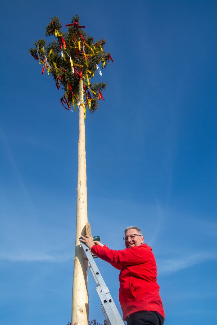 Gattin Karin hielt alles mit dem Handy fest. „Es ist jedes Jahr schön, aber nachdem es heuer das letzte Mal ist, ist es natürlich etwas ganz Besonderes“, sind sich die beiden einig. Nach getaner Arbeit gings in den Garten der Zapfls, wo ein kleiner Imbiss für alle Freunde und Helfer vorbereitet war. Ein Hoch dem 1. Mai!