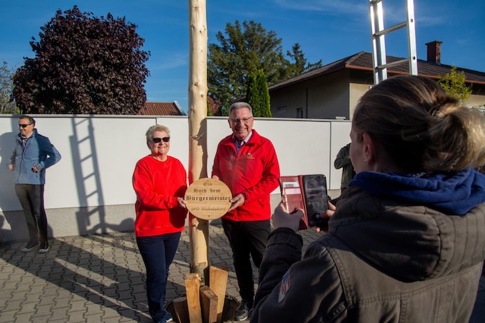 Kurz vor 18 Uhr am Donnerstag kamen seine SPÖ-Freunde aus der Fraktion, um den Traditionsbaum direkt vor dem Haus von Bürgermeister Gerhard Zapfl aufzustellen. Er ließ es sich auch nicht nehmen, selbst helfend Hand anzulegen.