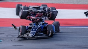 Wilde Szenen kurz nach Beginn des Formel-2-Sprints in Spielberg. Mehrere Fahrzeuge kollidieren, der Bolide von Sami Meguetounif wird durch ...