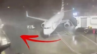 Windstoß fegt Boeing 737 von Passagierbrücke