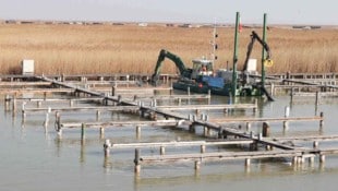 Das Seemanagement Burgenland ist im Einsatz, um wieder Schlamm aus den Kanälen und Häfen des Sees zu baggern.