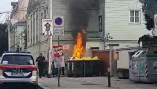 Feuer-Alarm auf Straße: Mülltonne in Flammen