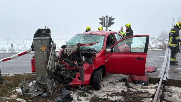 Auto kollidiert mit Zug: Lenkerin schwer verletzt