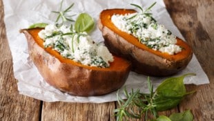 Ofen-Süßkartoffeln mit Spinat-Feta-Füllung