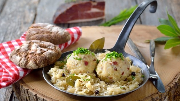 Wenn Sie zu den herzhaften Speckknödeln auch noch ein selbst gemachtes Sauerkraut servieren, haben Sie ein herrlich sättigende Hauptspeise.
