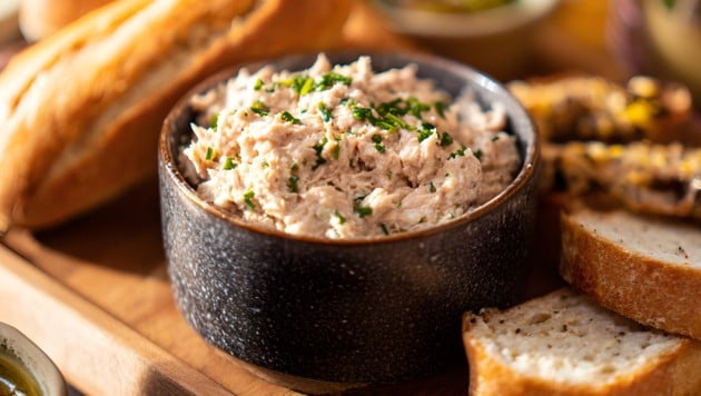 Ein Aufstrich oder Dip aus Thunfisch darf auf keinem Buffet fehlen. Er ist blitzschnell angerührt, man kann die Rezeptur nach Belieben variieren, etwa mit mehr Schärfe oder mehr Geschmeidigkeit durch ein bisschen Obers, wer will kann auch noch Kapern dazugeben. Die fertige Creme ist ebenfalls vielseitig, dir passt als Aufstrich auf Mini-Brötchen ebenso wie als Dip für Paprikastreifen, Soletti, Nachos & Co.