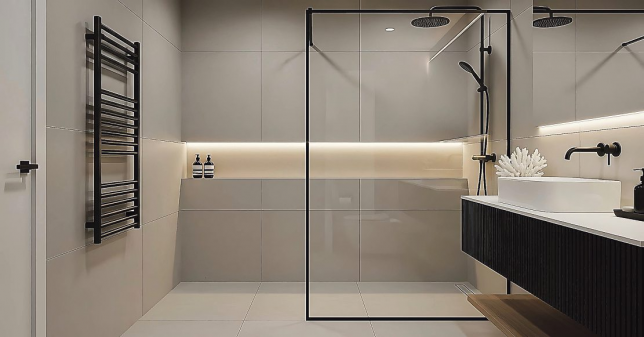 Ein weiterer Fixpunkt moderner Bäder sind bodenebene Walk-in-Duschen. Aus gutem Grund, denn sie bieten nicht nur barrierefreien Komfort, sondern lassen Räume offener und großzügiger wirken. Große Bedeutung kommt dem Licht zu. Indirekte Beleuchtung, dimmbare Leuchten und warme Lichtfarben schaffen eine entspannte Atmosphäre. Beleuchtete Nischen und sanfte Akzente lassen Möbel optisch schweben und unterstützen den Wunsch nach einem Bad als Rückzugsort.