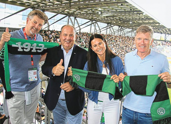 Das spannende Fußball-Match Wacker Innsbruck gegen Rapid Wien sorgte im Tivolistadion für beste Stimmung bei ÖFB-Präsident Josef Pröll, Wacker-Präsident Hannes Rauch und „Tiroler Krone"-Chefredakteur Claus Meinert.