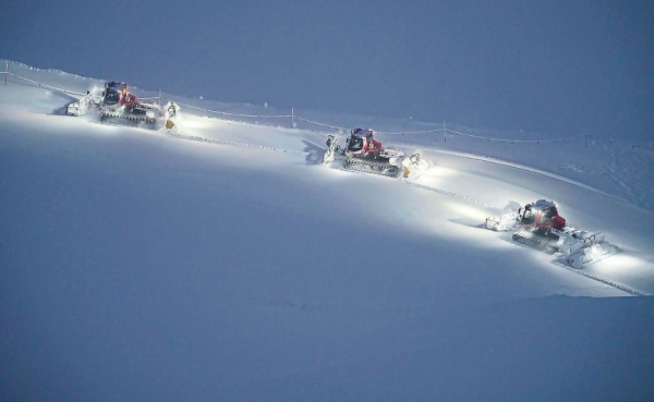 Wenn sich die letzten Skifahrer ins Tal verabschieden, beginnt für sie erst der Arbeitstag - oder besser gesagt: die Nacht. Mit bis zu 650 PS-starken Pistenraupen startet die Präparierung der Skiflächen, selbst dann, wenn Wind und Schnee über das Kitzsteinhorn peitschen.