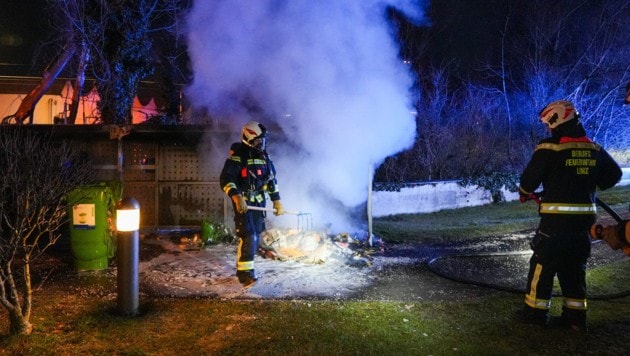 Statt eines Mistkübels, wie es der Alarm vermuten ließ, brannte vor einem Reihenhaus in Lichtenwörth, ...