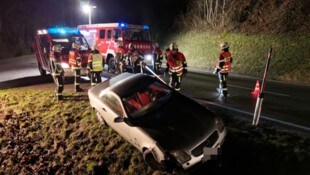 Mercedes landet neben Straße auf Wiesenhang